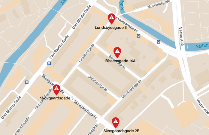 På Nærgenbrugsstationen i Dirch Passers Gade 5 og på Johanne Bergs Gade 3 kan du komme af med farligt affald, som kan være i en rød kasse.